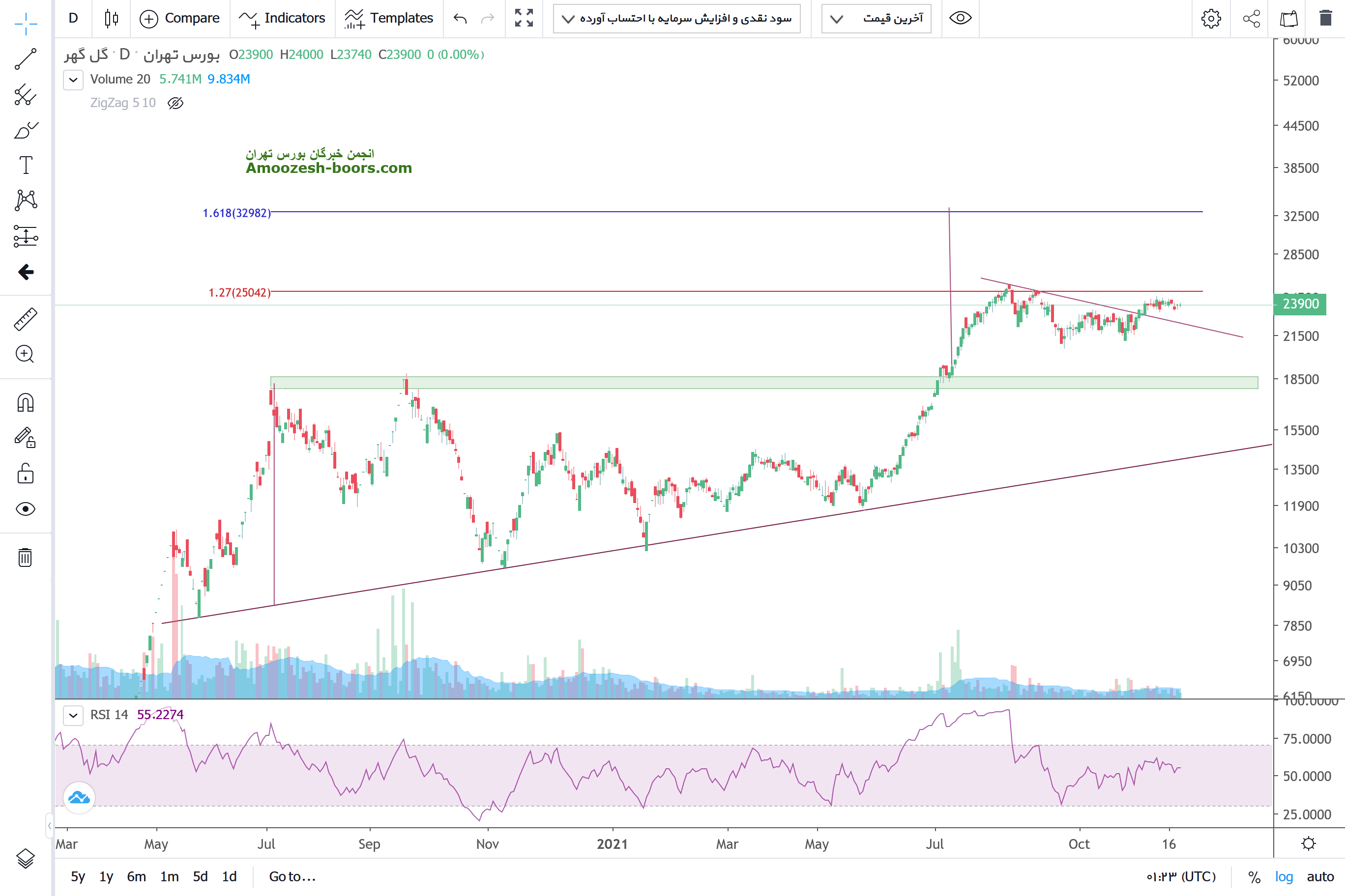 کگل پس از شکست مقاومت استاتیک و تست تارگت اول وارد فاز اصلاحی شده است. در کوتاه مدت در جریان یک کانال قرار گرفته که در صورت شکست مقاومت 25000 بر سر راه حرکتس هم قرار دارد همچنین با توجه به شکست الگوی ایجاد شده در میان مدت تارگت 33000 برای سهم در نظر گرفته شده که پس از اتمام اصلاح این تارگت میسر خواهد شد .در حال حاضر کف حمایتی 2070 تومان میباشد که در صورت نفوذ قیمت زیر این ادامه اصلاح قیمتی به سمت حمایت 1800 تومان محتمل است.