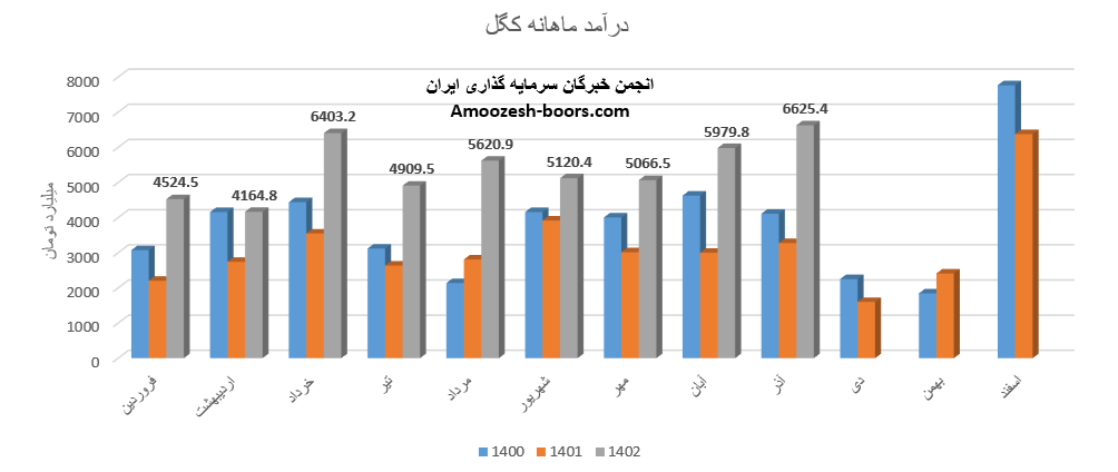 فروش آذر ماه سال 1402 سهم کگل 6625.4 میلیارد تومان گزارش شده است .تغییرات درآمدی کگل به شرح زیر میباشد: