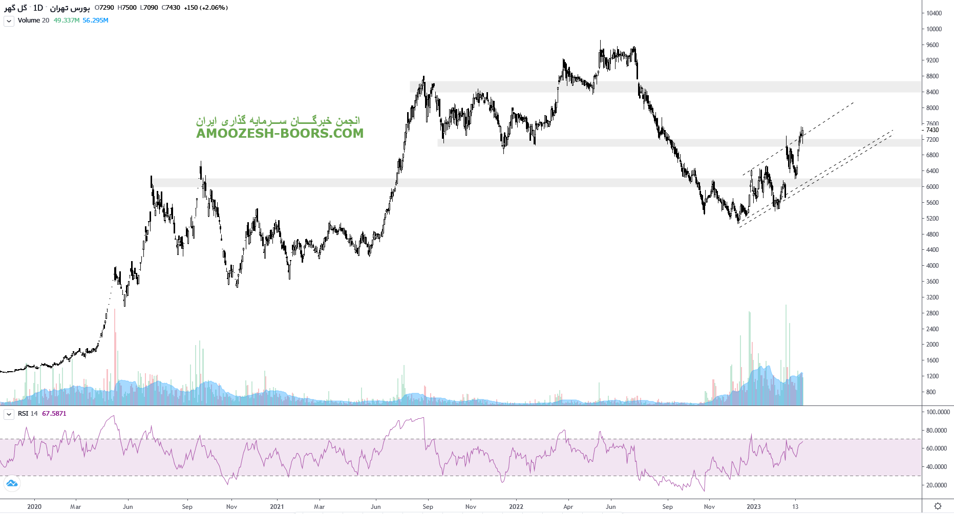 قیمت سهم کگل بر روی مقاومت مهم ۷۳۰ تومان قرار گرفته است. است لذا در صورت تثبیت شکست این ناحیه، مقاومت بعدی سهم کگل ناحیه ۸۶۰ تومان تعیین شده است اما در صورت برگشت مجدد به زیر این ناحیه، اولین حمایت سهم کگل ناحیه ۶۱۰ تومان تعیین شده است. لازم به ذکر است که قیمت سهم کگل در قالب یک کانال صعودی در حال رشد و حرکت می باشد.