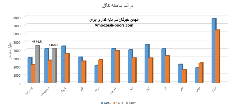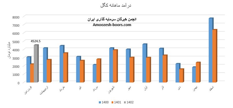شرکت کگل (معدنی و صنعتی گل گهر) در خرداد ماه سال 1402 حدود مبلغ 4210 میلیارد تومان درآمد داشته که این میزان در مقایسه با ماه گذشته 1% و همچنین در مقایسه با مدت مشابه سال گذشته 19% رشد پیدا کرده است.
