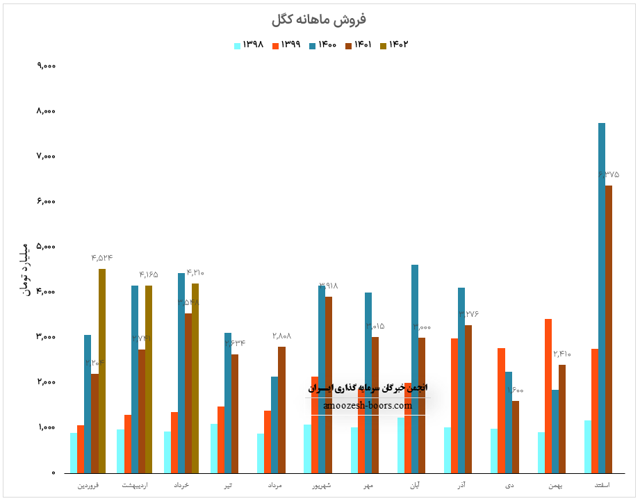در تحلیل بنیادی نماد کگل شاهد ثبت فروش 4164.8 میلیارد تومانی در عملکرد اردیبهشت ماه سال 1402 هستیم، فروش سهم کگل در مقایسه با ماه گذشته افت 8 درصدی و نسبت به مدت مشابه 52% رشد داشته است، تمامی درآمد شرکت معدنی و صنعتی گل گهر در گزارش فعالیت اردیبهشت ماه سال 1402 از طریق فروش داخلی تامین شده، محصول پر فروش کگل گندله میباشد که در مقایسه با ماه گذشته افزایش 7 درصدی مقدار و رشد 11 درصدی نرخ در مقایسه با ماه گذشته را تجربه نموده است، مجموع درآمد سهم کگل طی عملکرد دو ماهه در مقایسه با مدت مشابه رشد 76 درصدی داشته و طی این مدت 23% از کل درامد سال گذشته پوشش داده شده است.