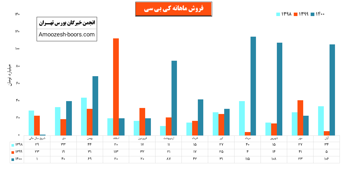سهم کی بی سی در آذر 1400 مبلغ 106 میلیارد تومان درامد داشته که این میزان نسبت به ماه گذشته 361% و همچنین نسبت به مدت مشابه سال گذشته 2020% رشد پیدا کرده است!
